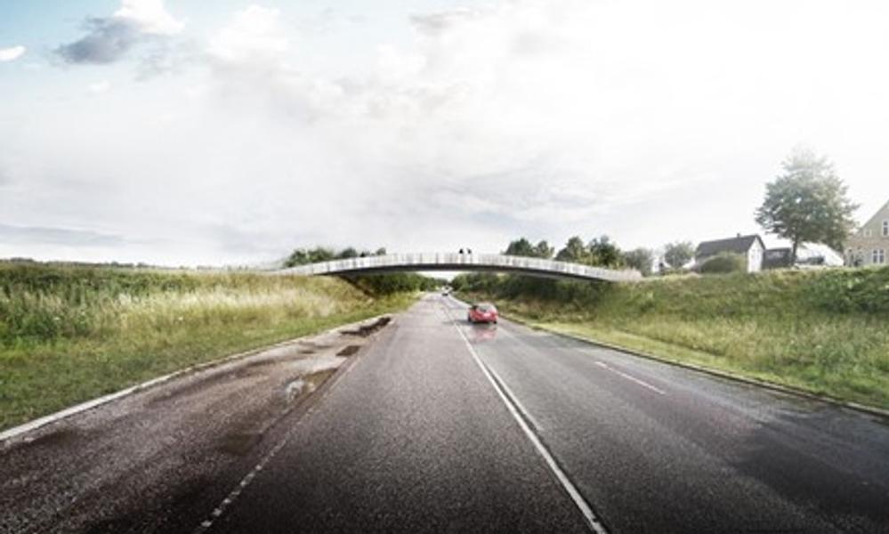 Den nye konstruktion forbinder Christiansfeld by med landskabet mod vest og er udformet som et kunstværk og designet af billedkunstneren Sophia Kalkau i samarbejde med Schønherr Landskabsarkitekter, Rambøll, Brødremenigheden og Kolding Kommune.
