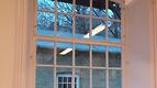 Løsningen blev at tage en enkelt af de store ruder ud, hvorefter det var muligt at hejse både gamle ruder ud og de nye ruder ind i bygningens overetage.